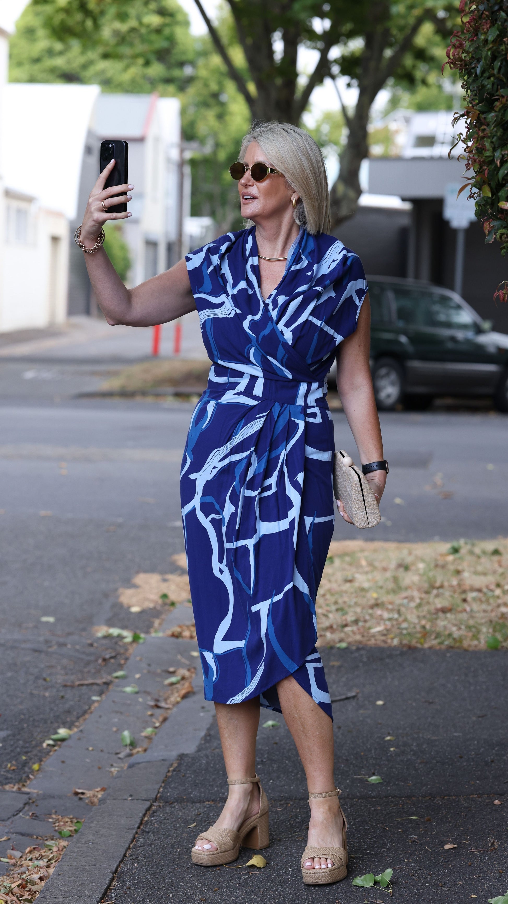 Darcy Rayon Print Dress - Blue